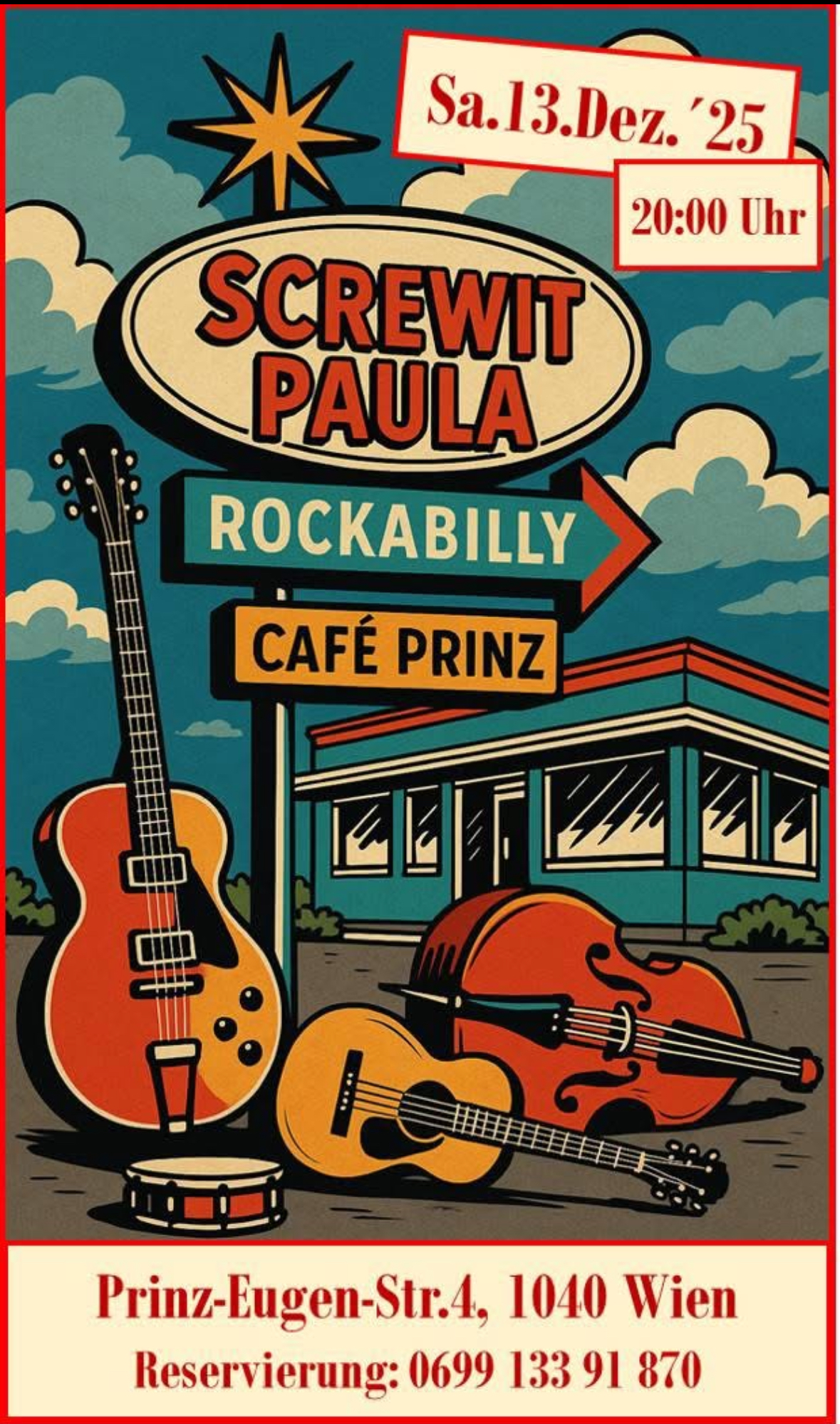 Saturday, September 23rd, 2023,8:00 p.mScrewit Paula is a formation of four musicians who are completely dedicated to the 50s rock 'n' roll and rockabilly style. ︎︎︎ more